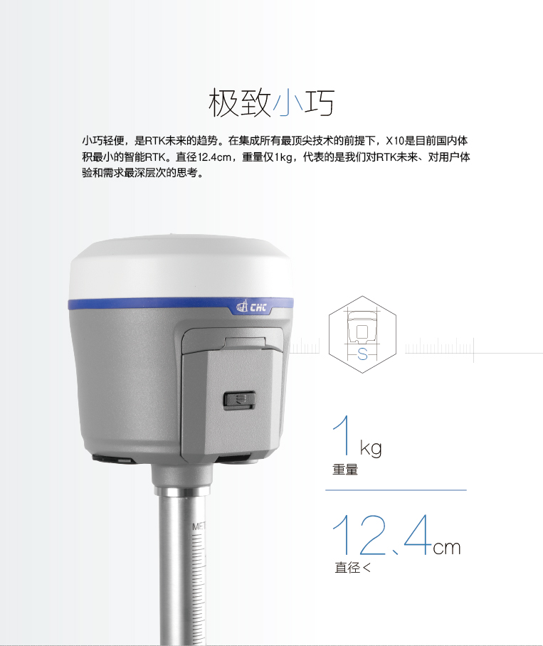 華測X10 智能RTK,是RTK領域內的一次大膽的進化。它精致小巧但大有可為,快速精準的測量,堅固抗摔的材質,持久耐用的續航,和智能強悍的配置,為用戶帶來全新的測量體驗。