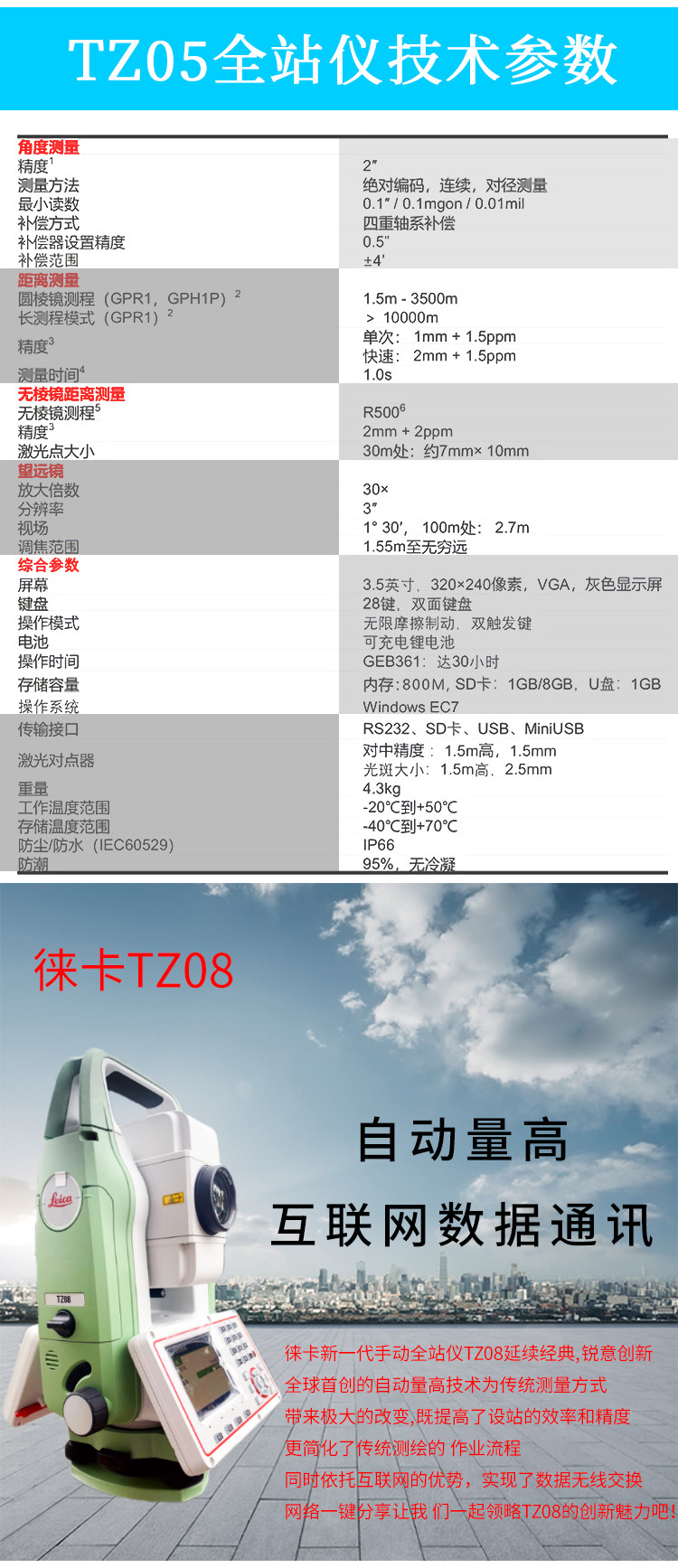 首頁 > 徠卡全站儀 > 進口徠卡TZ05/TZ08/TZ12全站儀
